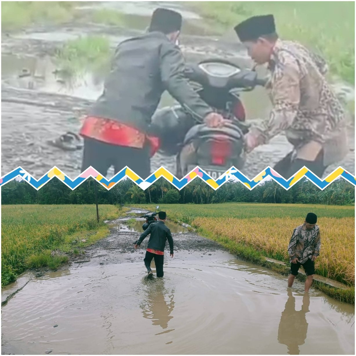 “Lubangnya tidak kelihatan karena tertutup air. Pas motor masuk, langsung mati karena mesin terendam,” ujar Amin.