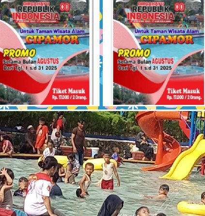 Dipaparkan pemilik dan pengelola kawasan wisata cipamor (Owner) ,H.Sukma ” promo tiket harga masuk ini untuk Ikut memeriahkan HUT R I yang Ke -80 di tahun 2025, agar semua teman-teman ,keluarga dan anak-anak yang tercinta dapat menikmati liburan di kolam renang cipamor dengan harga tiket masuk 2 orang hanya Rp.17.000 ( Tujuh belas ribu rupiah ) dan harga promo ini sangat terjangkau pengunjung ucapnya.